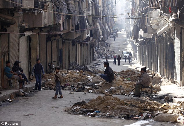 Damaged homes after shelling in Aleppo's Bustan al-Basha district in Syria