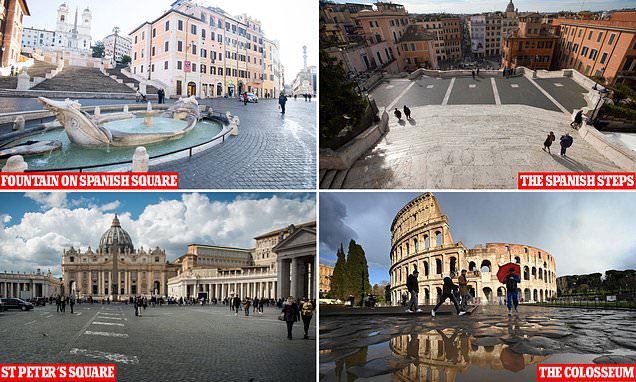 A deserted Rome: ‘We are but a few steps ahead of you in the path of time.’-Photo: Daily Mail