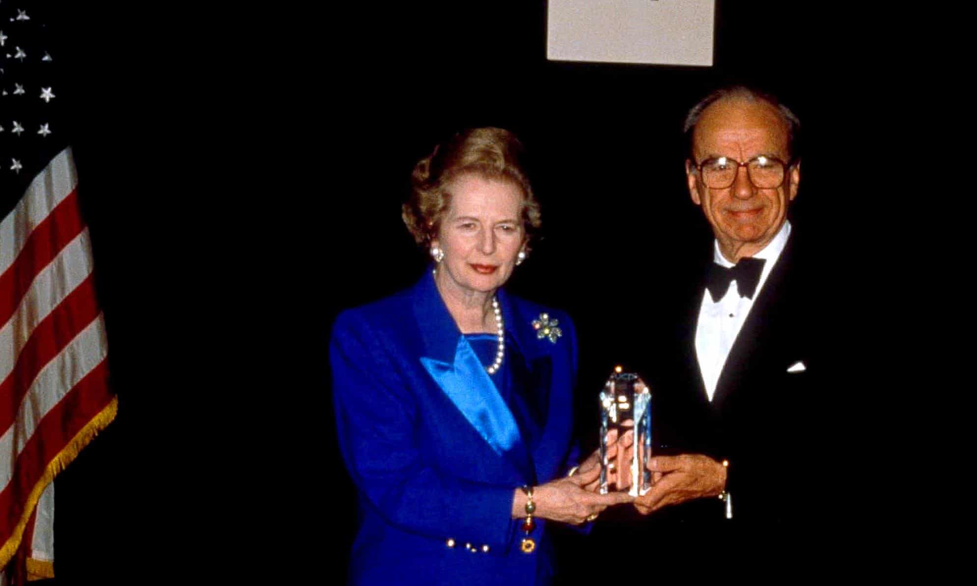 'A rare sighting of Margaret Thatcher and Rupert Murdoch, in 1991.