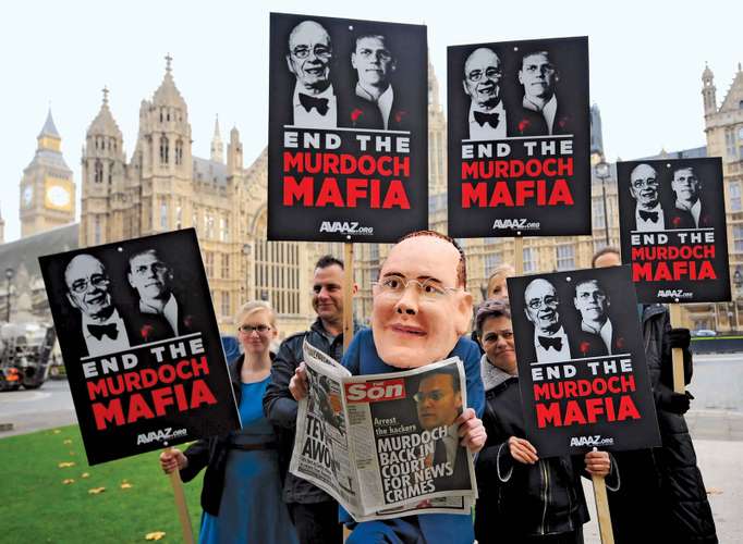 ‘On Nov. 10, 2011, a protester representing media executive James Murdoch appears at a demonstration by the activist organization Avaaz outside
