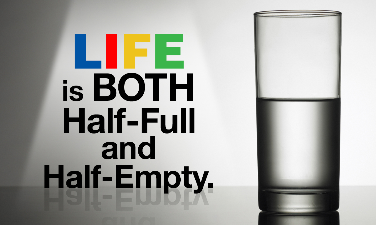 Rarely—if ever—is the complete answer to the question considered, however. Actually, the glass isn’t half full or half empty. It’s both, or neither. The glass is in a state of continual change, so no need to feel some type of way. As Shakespeare wrote in Hamlet, “For there is nothing either good or bad, but thinking makes it so.”