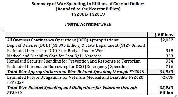 Some of the Costs of War Project’s main findings include: